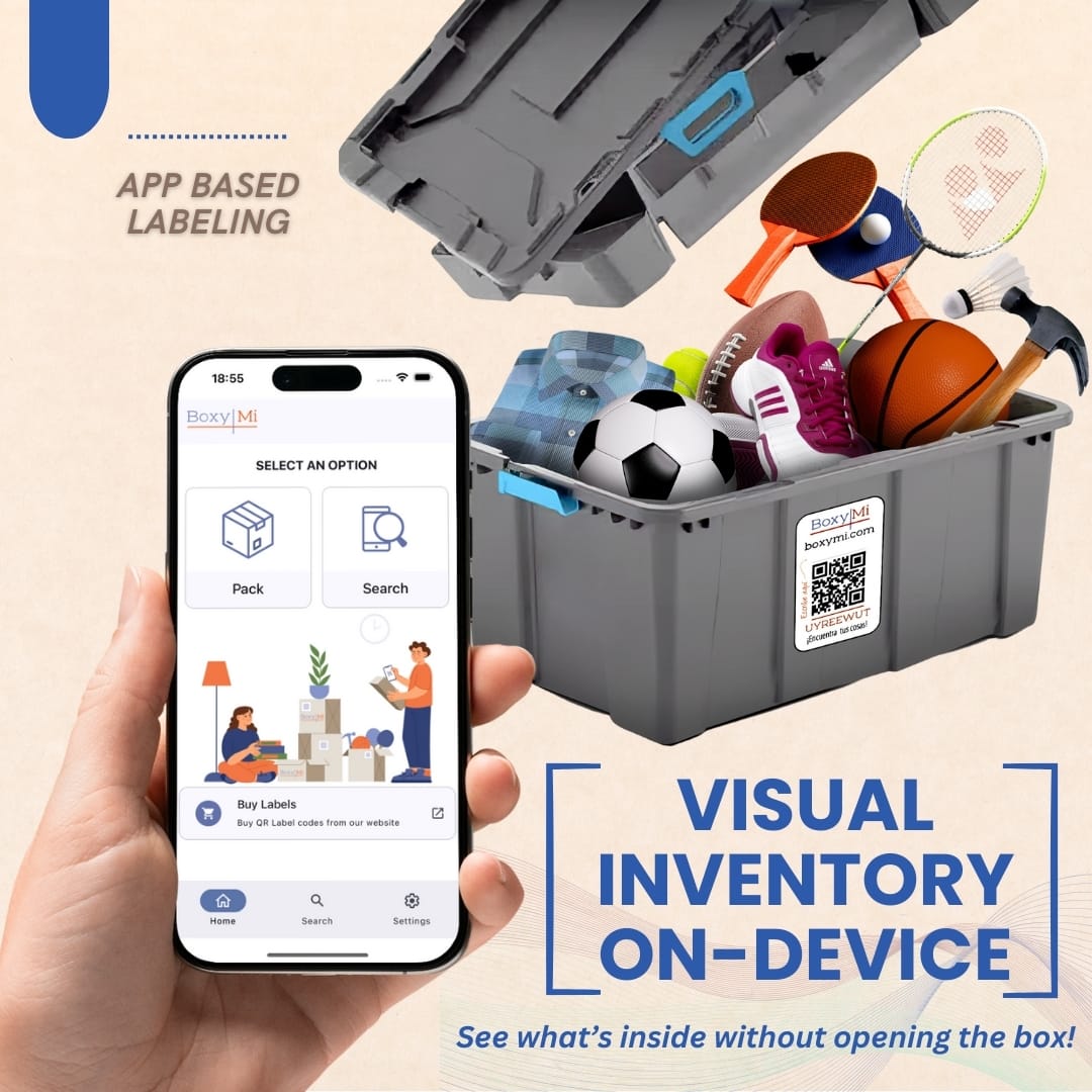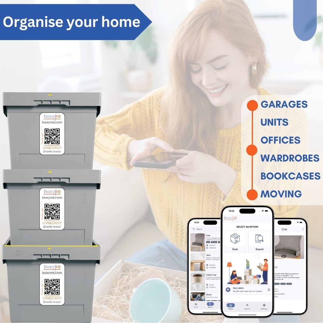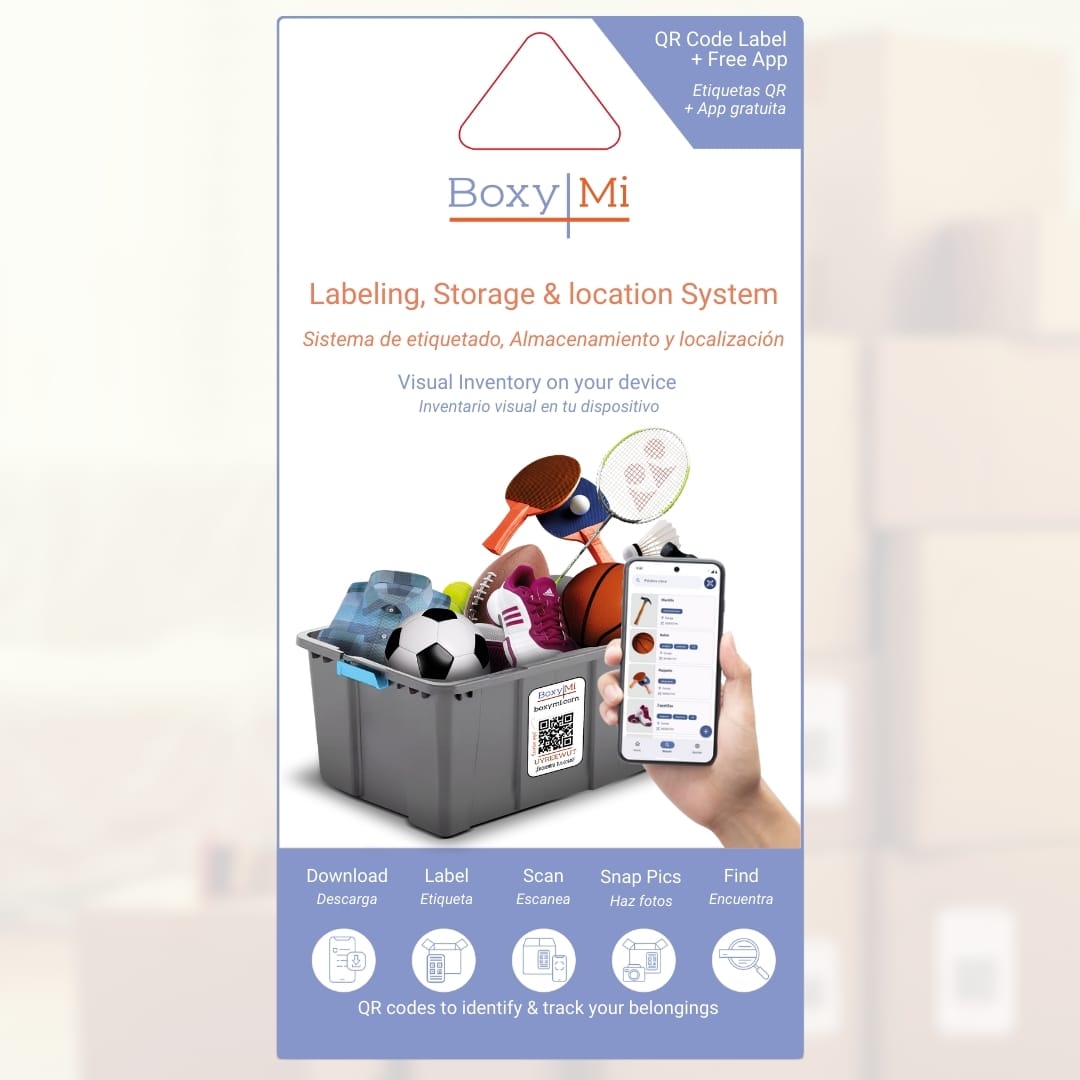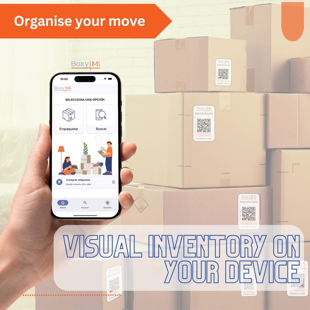 Nuestras innovadoras etiquetas y nuestra app gratuita es intuitiva y hacen que el seguimiento del inventario sea mucho más sencillo y eficaz. Hemos diseñado una aplicación muy sencilla que te permitirá subir fotos del contenido, añadir palabras clave e incluso seleccionar una localización donde almacenarás tus cajas. Te permitirá encontrar todo lo que necesitas tan solo escaneando el código de tu etiqueta, introduciendo las palabras clave o simplemente por la ubicación de lo que buscas (cocina, baños, oficina…)